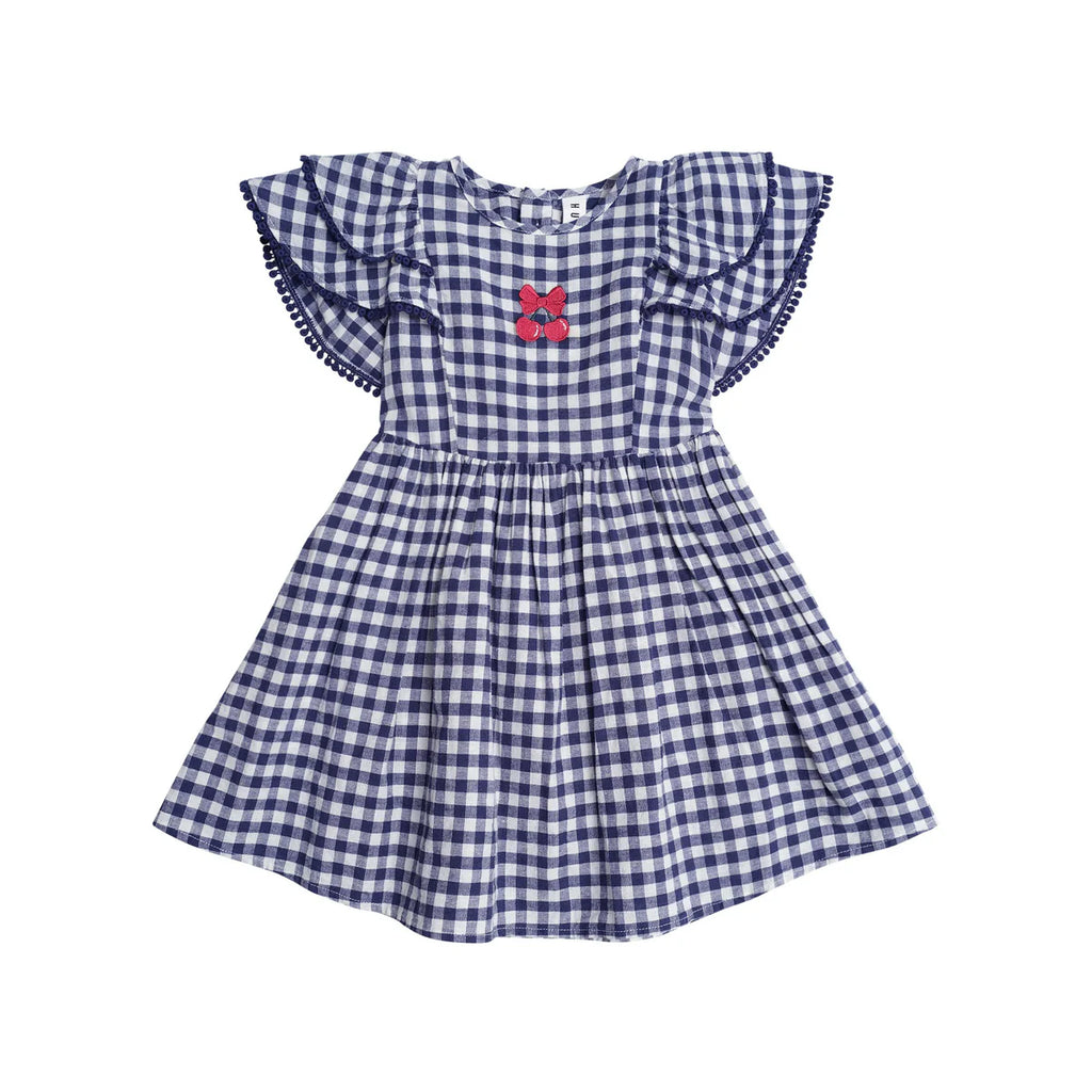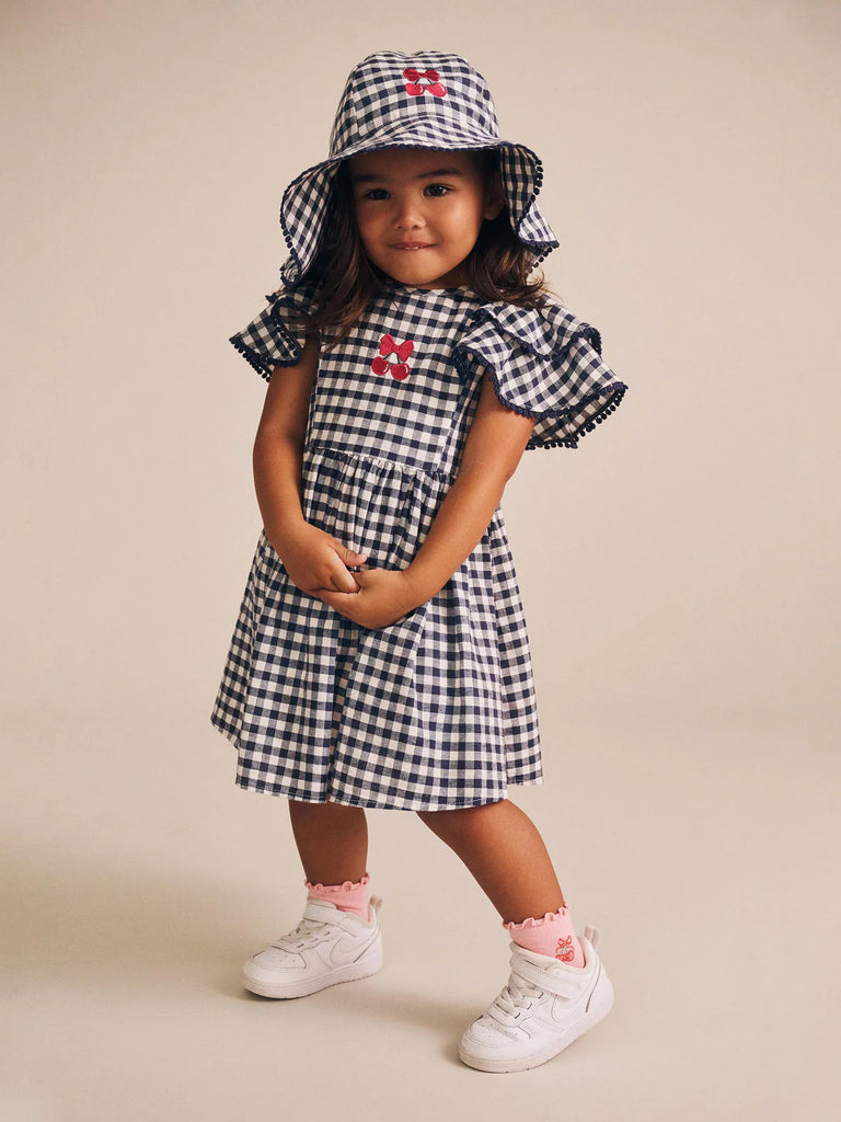 Huxbaby Cherry Pie Check Frill Dress - Indigo/Almond Milk