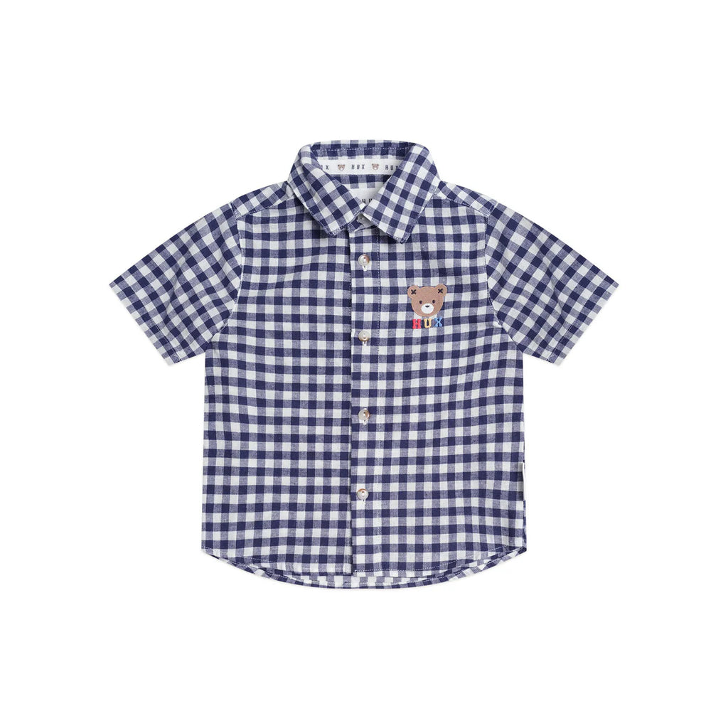Huxbaby Huxbear Button Up Blue Check - Indigo/Almond Milk