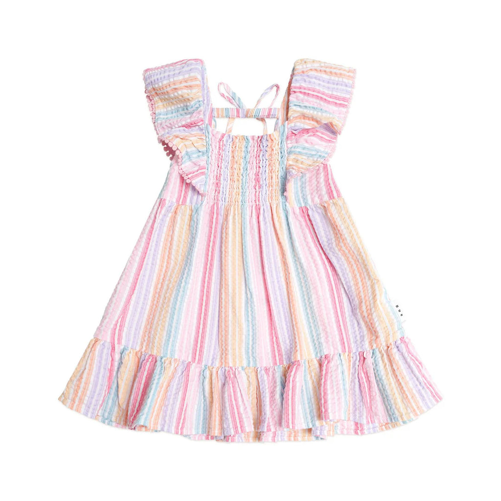 Huxbaby Rainbow Stripe Shirred Frill Dress - Multi